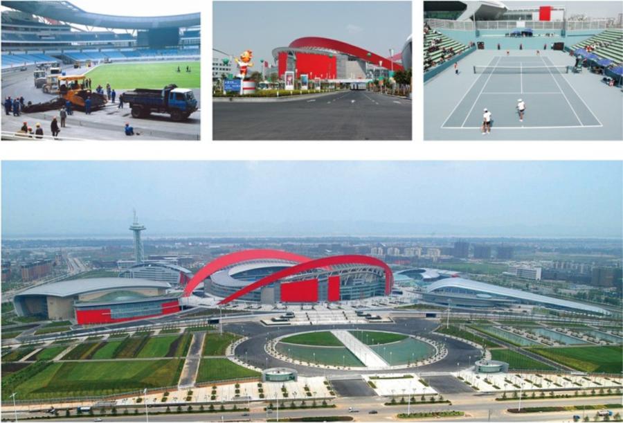 南京奧體中心工程是國(guó)家十運(yùn)會(huì)主場(chǎng)館,也是江蘇省重點(diǎn)工程,工期、質(zhì)量容不得一點(diǎn)馬虎。工程包括室內(nèi)室外場(chǎng)地及攤鋪任務(wù),以及主體育場(chǎng)、訓(xùn)練場(chǎng)、十二片網(wǎng)球場(chǎng)的結(jié)構(gòu)層施工任務(wù)。奧體中心室外瀝青砼、網(wǎng)球場(chǎng)瀝清砼等工程量小但要求極其嚴(yán)格,眾多瀝青砼生產(chǎn)公司受困于設(shè)備和技術(shù),知難而退。