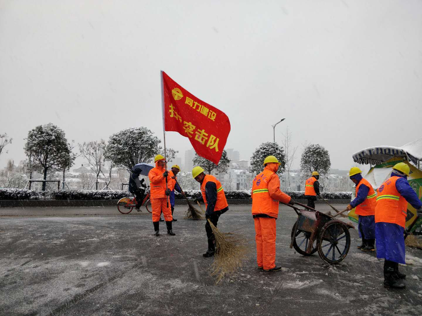 2月7日深夜,南京暴雪,主城區(qū)積雪厚度達(dá)12cm。積雪覆蓋給城市出行帶來了諸多不便,也給安全管理增添了隱患。同力建設(shè)掃雪大軍不敢懈怠。分撒融雪劑、機(jī)械除雪、人工清掃……掃雪隊(duì)伍持續(xù)作業(yè),確保玄武大道、長樂路、龍?bào)粗新?、江北大道等交通要道全部暢通。雪情就是命令!?dāng)千家萬戶依然沉浸在新年的喜悅中時(shí),不少還沒來得及合眼的冰雪戰(zhàn)士,喝了口熱湯再度出征。