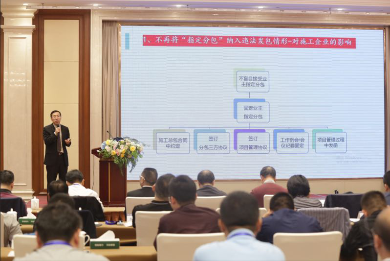 大會(huì)期間,住建部專家作《建筑工程施工發(fā)包與承包違法行為認(rèn)定查處管理辦法》的報(bào)告,解讀相關(guān)政策,并重點(diǎn)介紹施工企業(yè)風(fēng)險(xiǎn)管理措施,引起了會(huì)員企業(yè)的濃厚興趣。中國(guó)市政協(xié)會(huì)秘書(shū)長(zhǎng)沈汛作《從基建市場(chǎng)變化看中小施工企業(yè)經(jīng)營(yíng)》的報(bào)告,圍繞改革開(kāi)放40年以來(lái),基建建設(shè)市場(chǎng)和施工企業(yè)市場(chǎng)經(jīng)營(yíng)發(fā)展、生產(chǎn)管理等方面進(jìn)行了深度闡述。