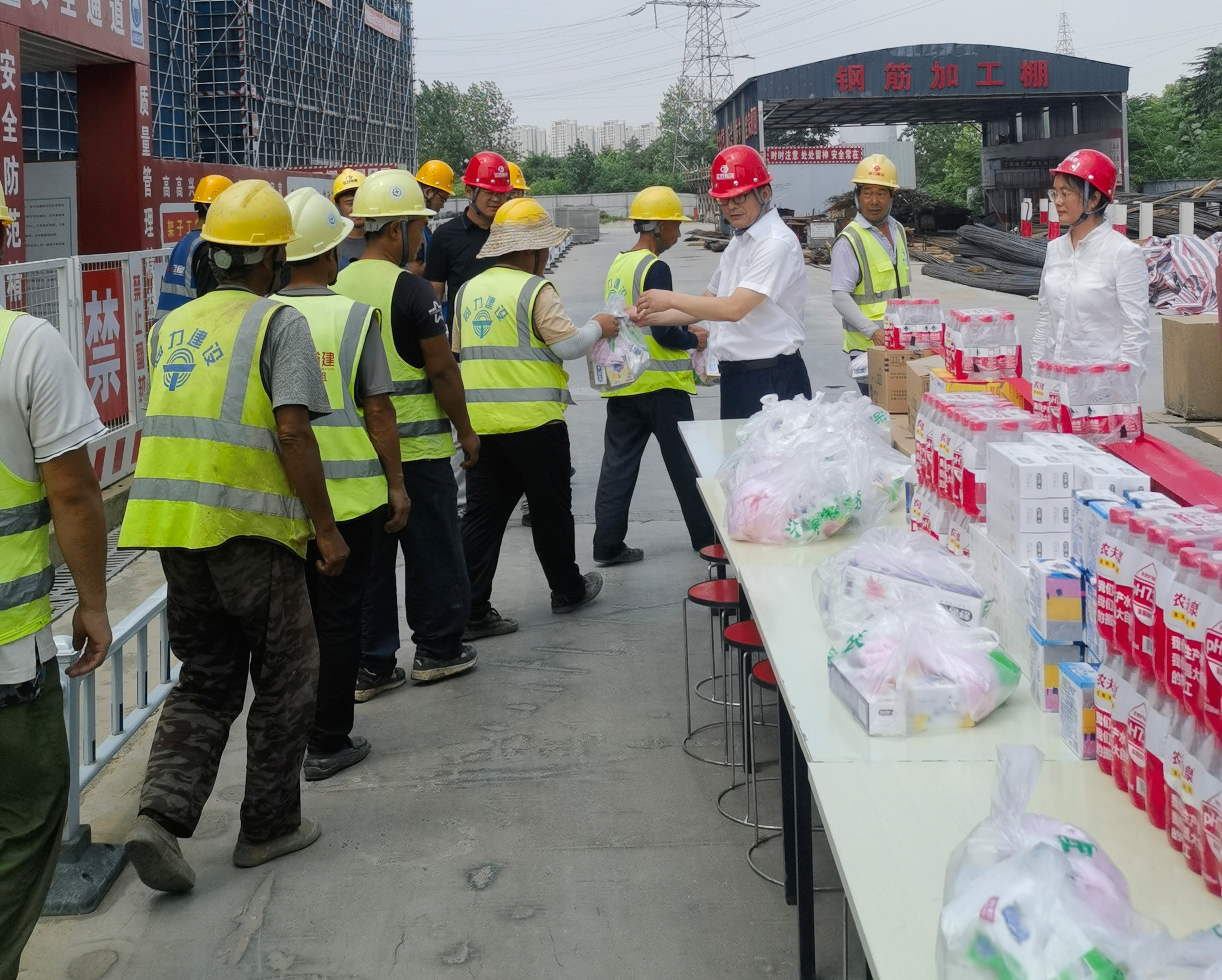 烈日炎炎,心系職工的腳步匆匆,近日,同力建設(shè)黨總支書(shū)記兼工會(huì)主席仇偉明帶隊(duì)赴項(xiàng)目現(xiàn)場(chǎng)開(kāi)展高溫慰問(wèn)活動(dòng),為奮戰(zhàn)在酷暑中的一線職工送去清涼和關(guān)愛(ài)。同力建設(shè)調(diào)研員徐慶平、總經(jīng)理助理張穎陪同。