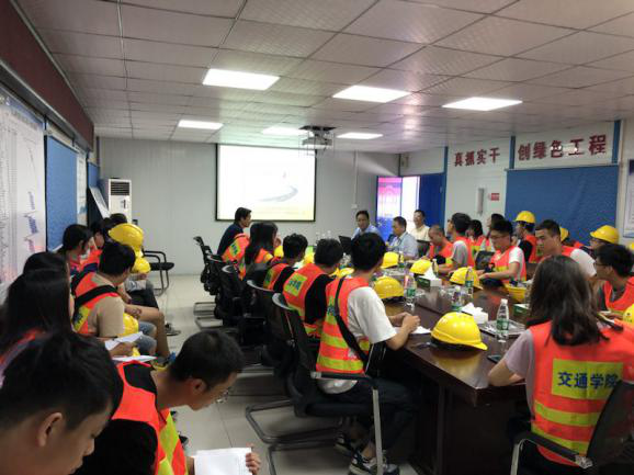 9月7日上午,南京工業(yè)大學(xué)交通學(xué)院一行80余學(xué)生在校方老師的帶領(lǐng)下,來(lái)到了工程一分公司施工的紅山路隧道項(xiàng)目經(jīng)理部進(jìn)行參觀學(xué)習(xí)。在項(xiàng)目部門口,經(jīng)過(guò)簡(jiǎn)要介紹后,一行人分為兩組,一組在項(xiàng)目經(jīng)理丁健的帶領(lǐng)下參觀施工現(xiàn)場(chǎng),另一組由公司市場(chǎng)部經(jīng)理徐雋組織在項(xiàng)目部會(huì)議室聽取紅山路項(xiàng)目施工工藝介紹及大校場(chǎng)隧道技術(shù)工藝總結(jié),之后兩組人員輪換,讓每個(gè)學(xué)生都可以從理論到現(xiàn)場(chǎng)對(duì)整個(gè)隧道施工有一定的了解。