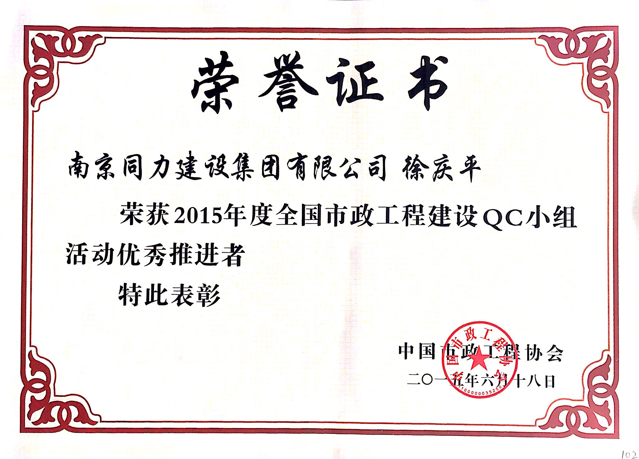 公司徐慶平榮獲2015年度全國(guó)市政工程建...