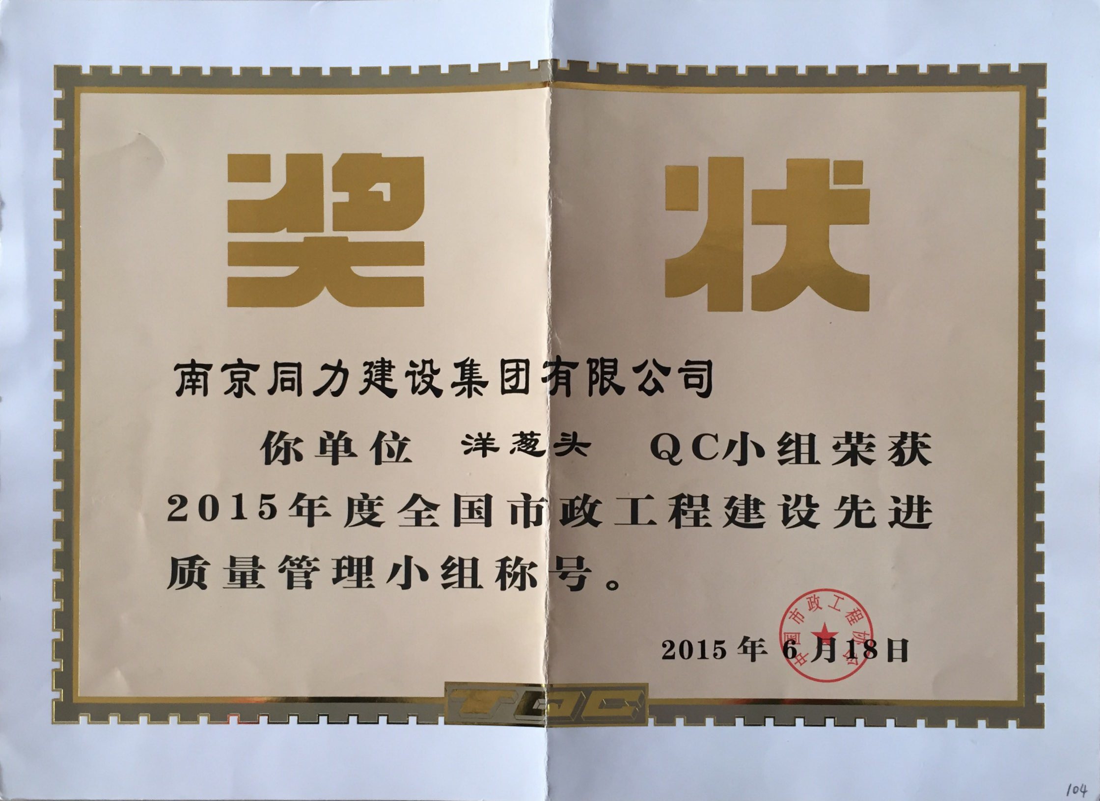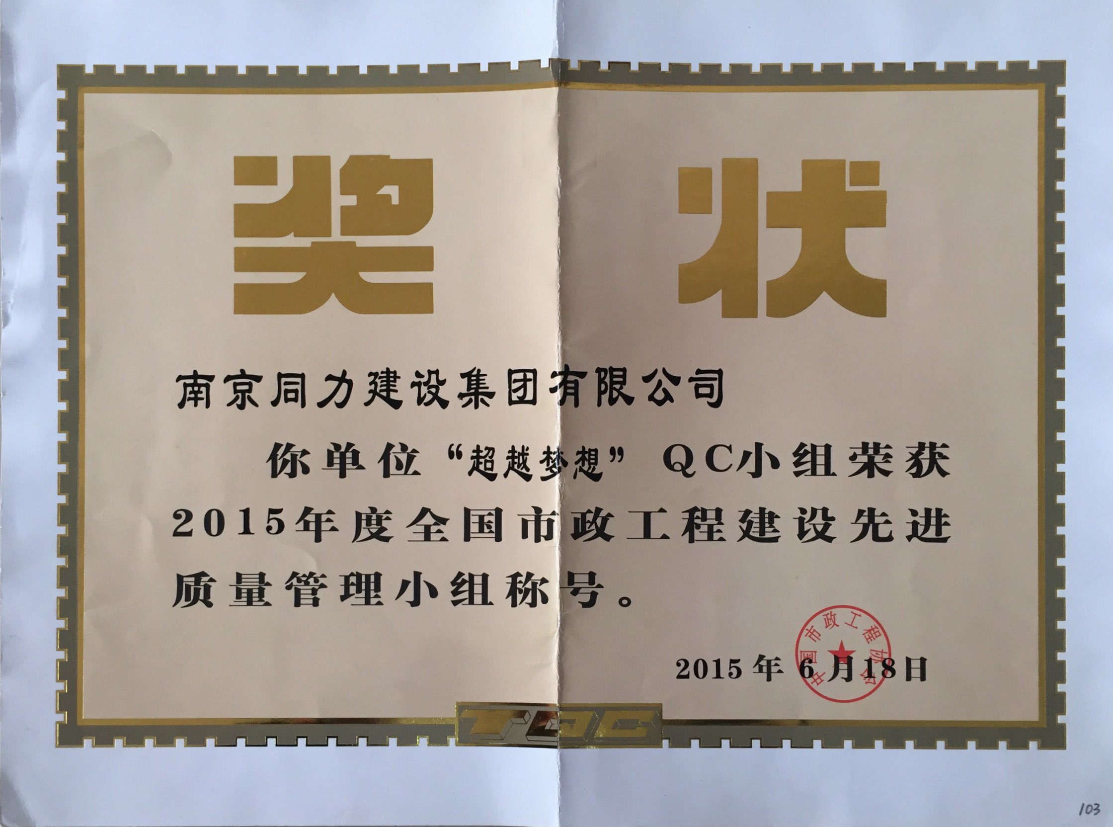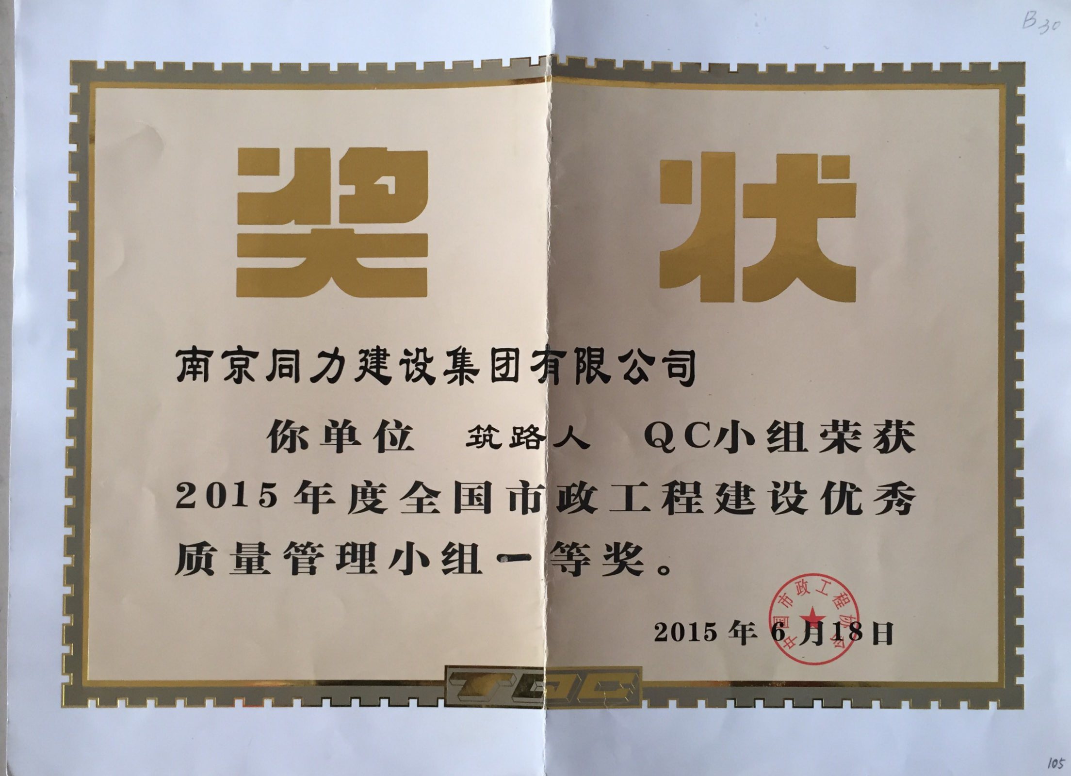 公司“筑路人”QC小組榮獲2015年度全國(guó)市...