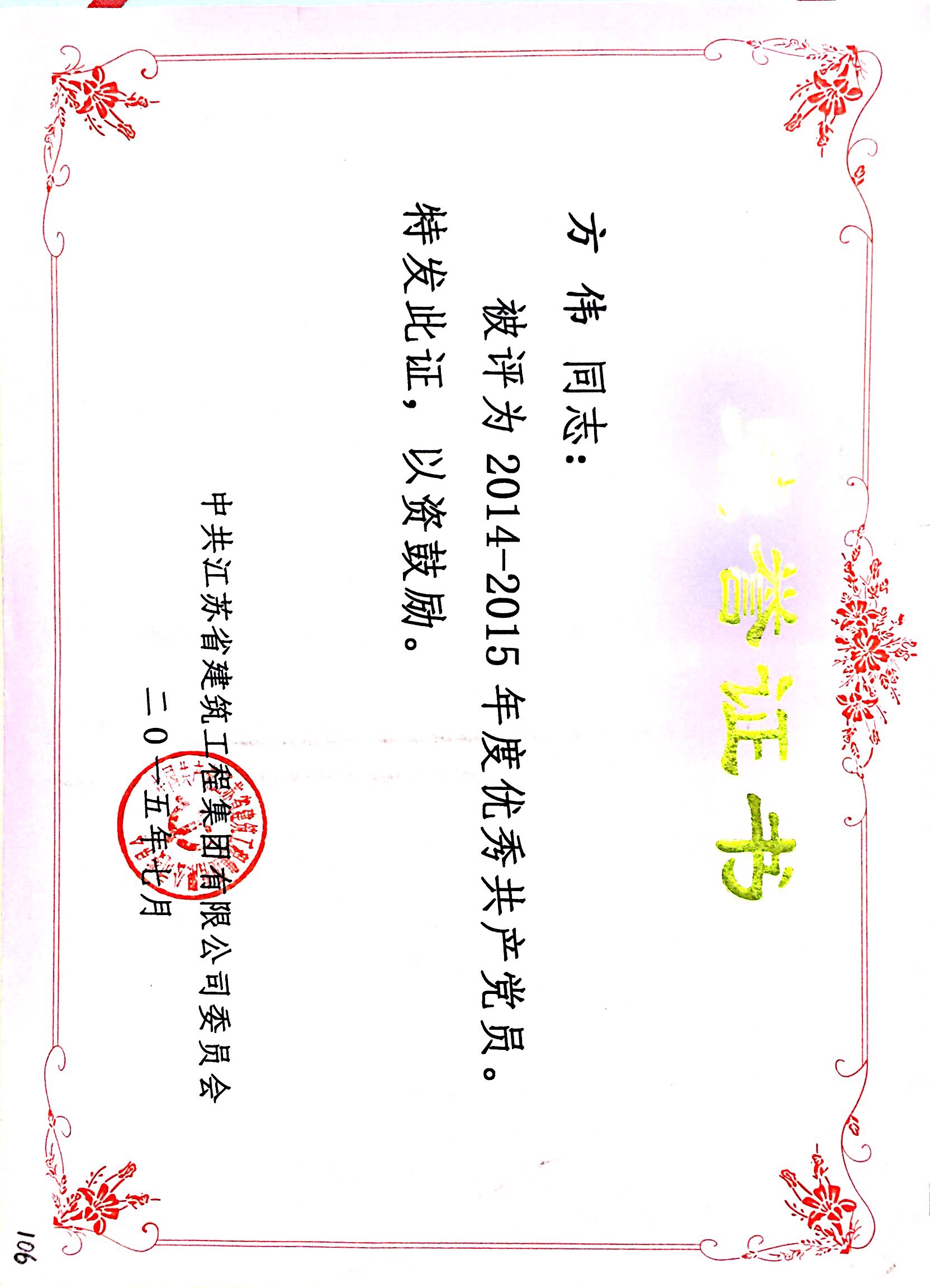 公司方偉被評(píng)為2014-2015年度優(yōu)秀共產(chǎn)...